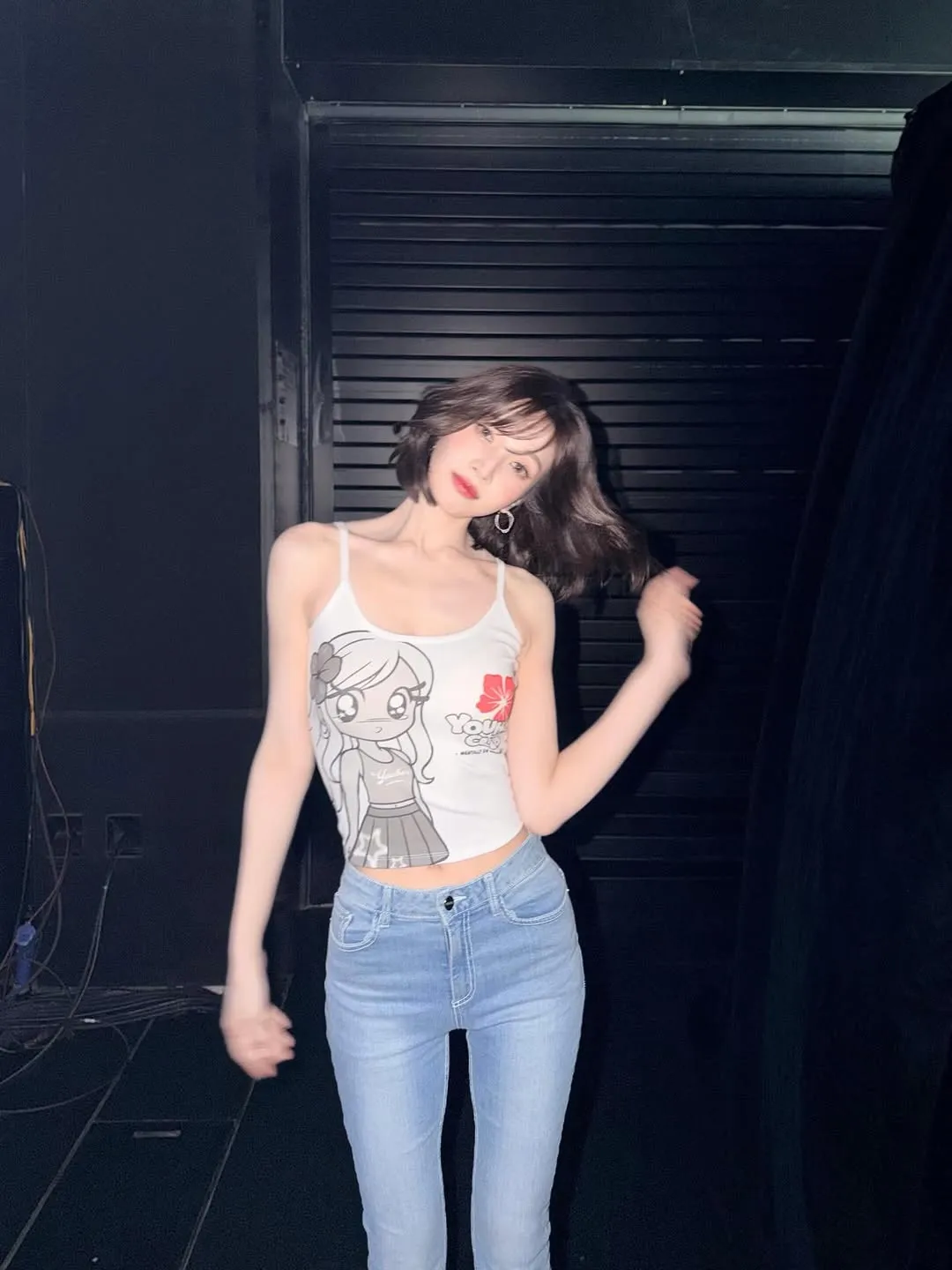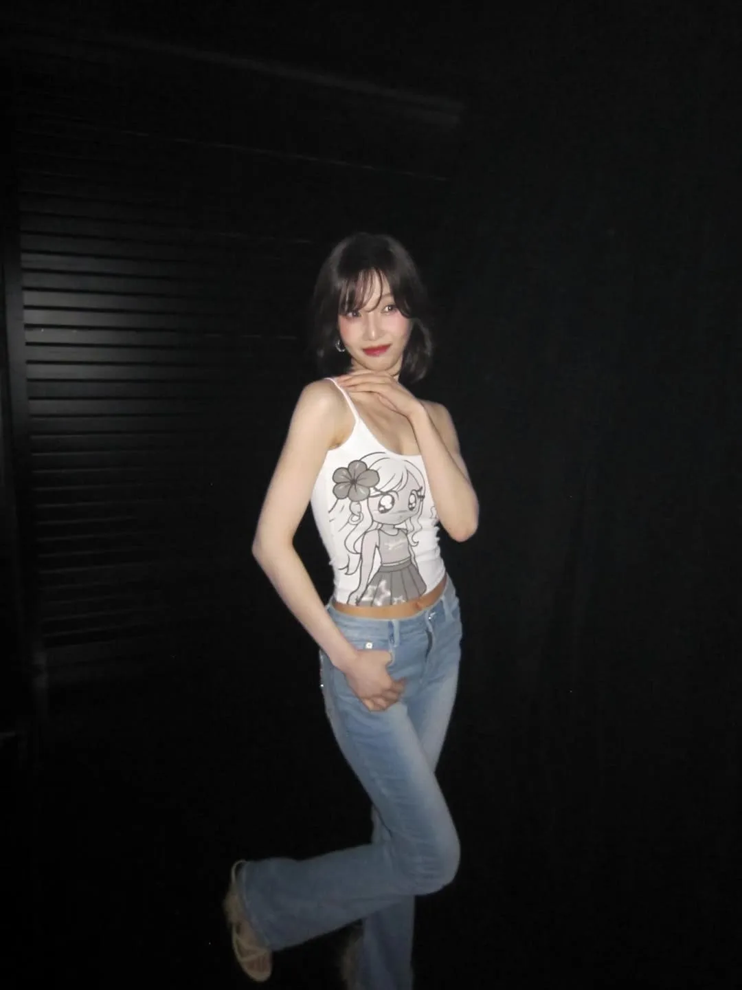 En las imágenes, la artista posa con un minivestido. Su silueta delicada, junto con curvas que roban suspiros, salta a la vista.