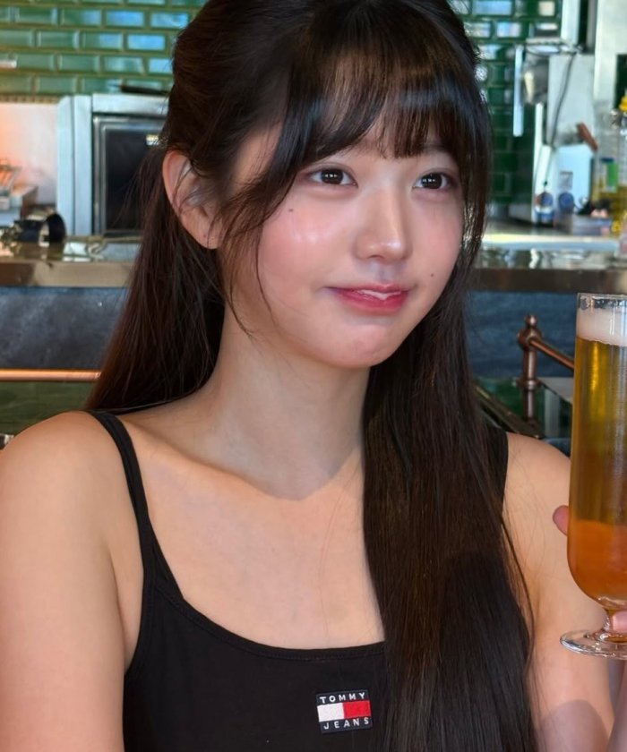 사진 속 그는 식당에서 시원한 맥주를 마시는 모습으로, 화장기 없는 민낯과 맑은 물광 피부로 시선을 사로잡았다. 특히 얼굴보다 큰 맥주잔을 들고 있는 모습이 인상적이며, 맥주를 한 모금 마신 그는 입술에 맥주 거품이 묻어 귀여움을 더했다.