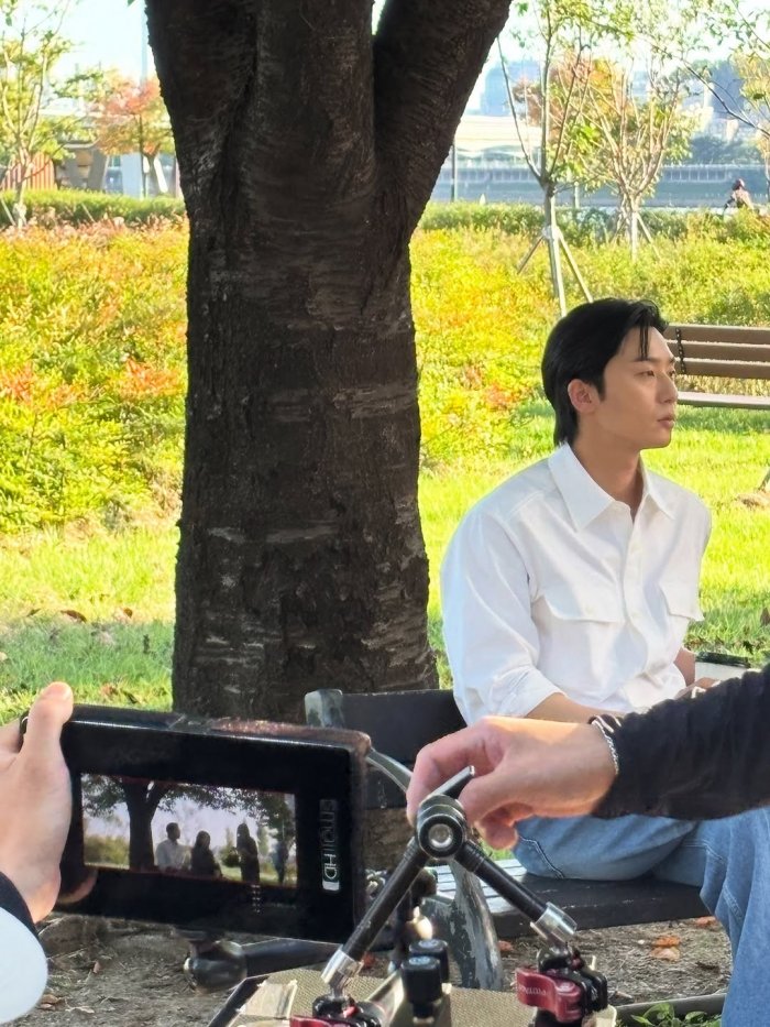 공개된 사진 속 박서준은 촬영장에서 흰 셔츠와 청바지를 입고 가을 햇살 아래 환한 미소를 짓고 있다. 드라마 제목이 적힌 슬레이트를 들고 있는 모습부터 대기 중의 여유로운 표정까지, 마지막 촬영의 따뜻한 현장 분위기가 고스란히 전해진다.