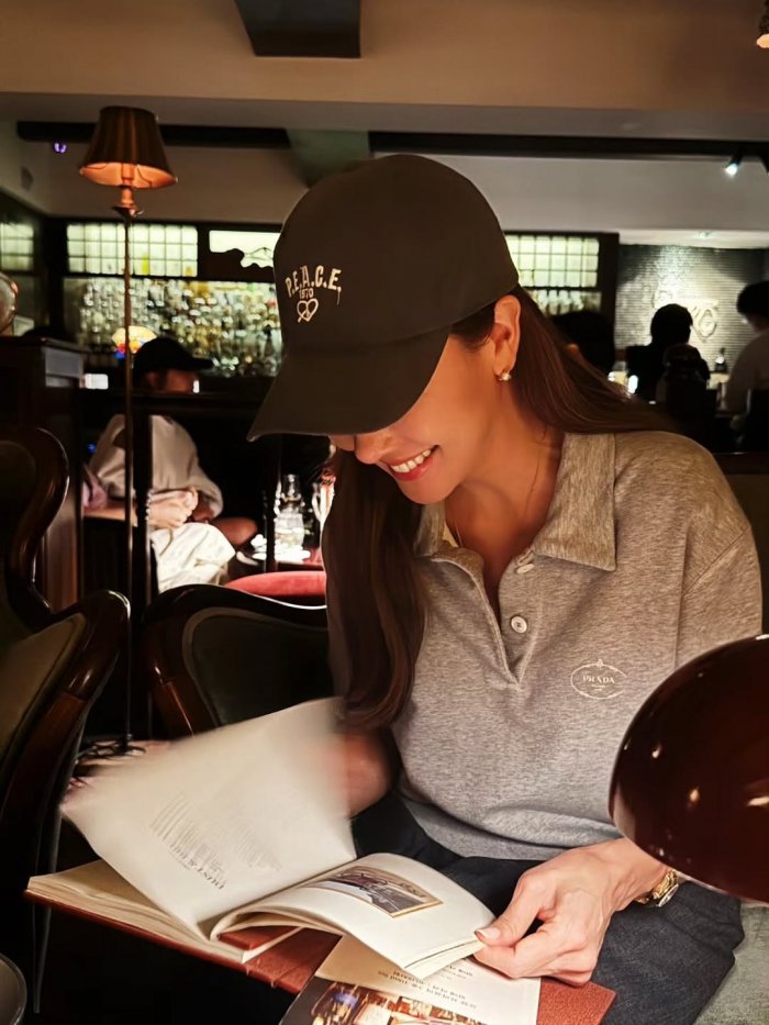 공개된 사진 속 그는 밝은 미소를 지으며 자연스럽게 의자에 앉아 여유로운 분위기를 연출하고 있다. 브라운 톤의 티셔츠와 클래식한 화이트 스커트의 조화가 캐주얼하면서도 세련된 인상을 준다. 여기에 모자와 운동화를 매치해 편안한 일상의 순간을 더욱 돋보이게 했다.