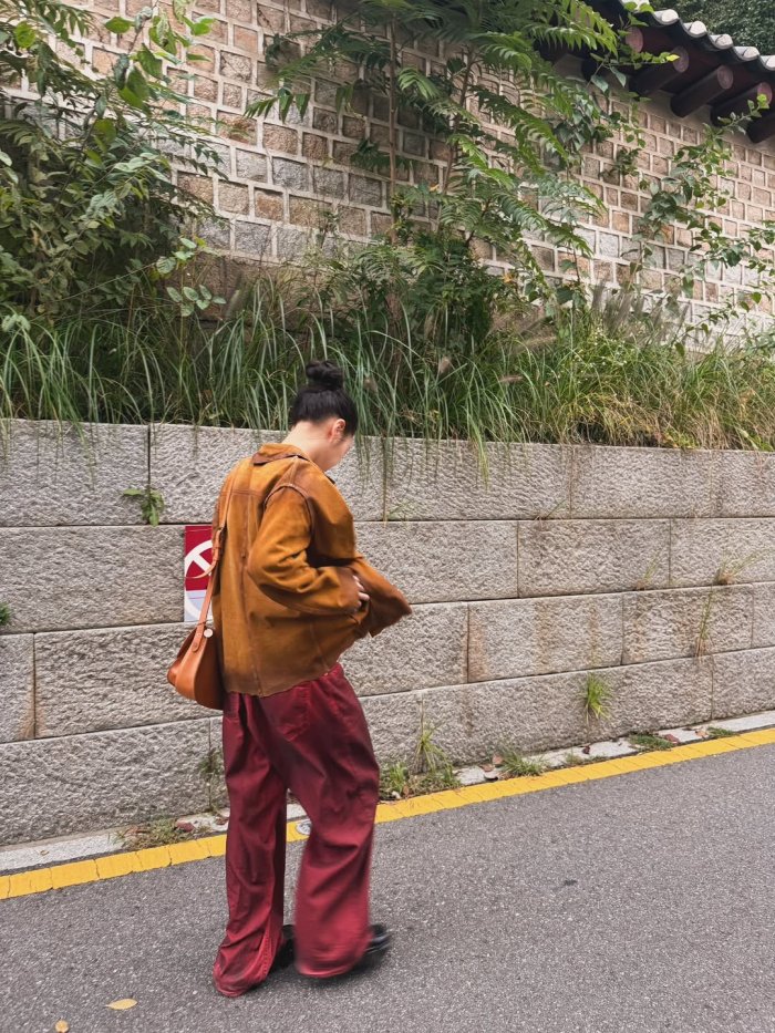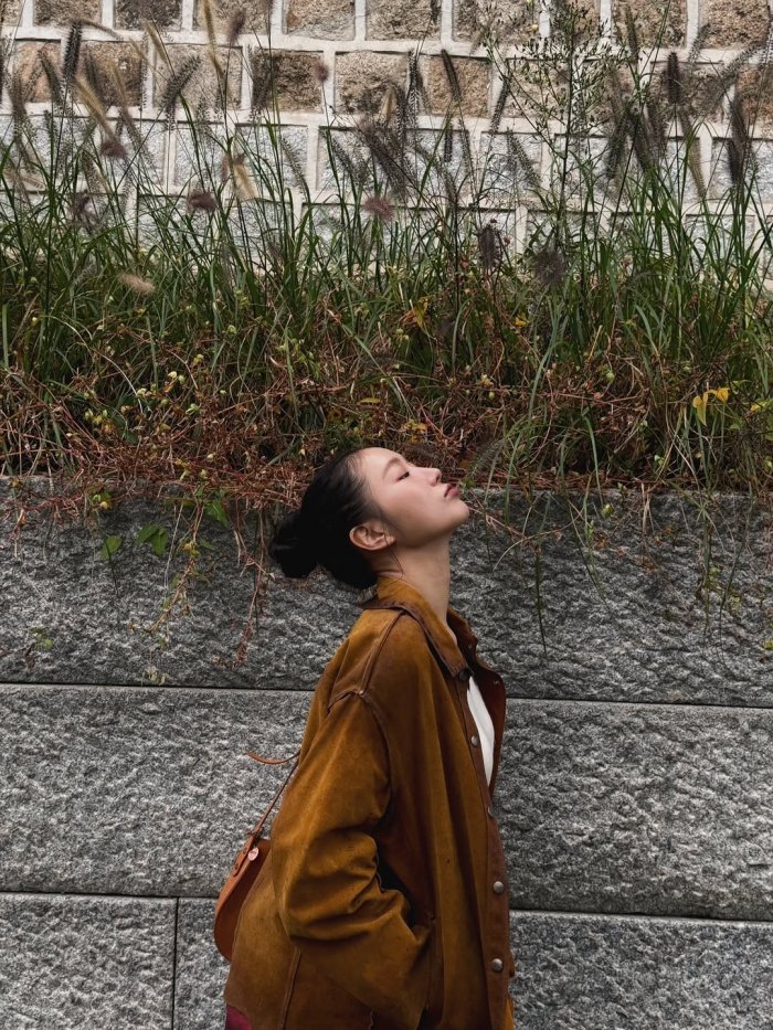 공개된 사진 속 그는 고풍스러운 담장을 배경으로 브라운 컬러의 재킷과 와이드 팬츠를 매치한 독창적인 가을 패션을 선보였다. 진한 색상의 가방을 더해 전체적인 룩에 포인트를 줬으며, 자연스럽게 묶은 헤어스타일은 세련된 멋을 더했다.
