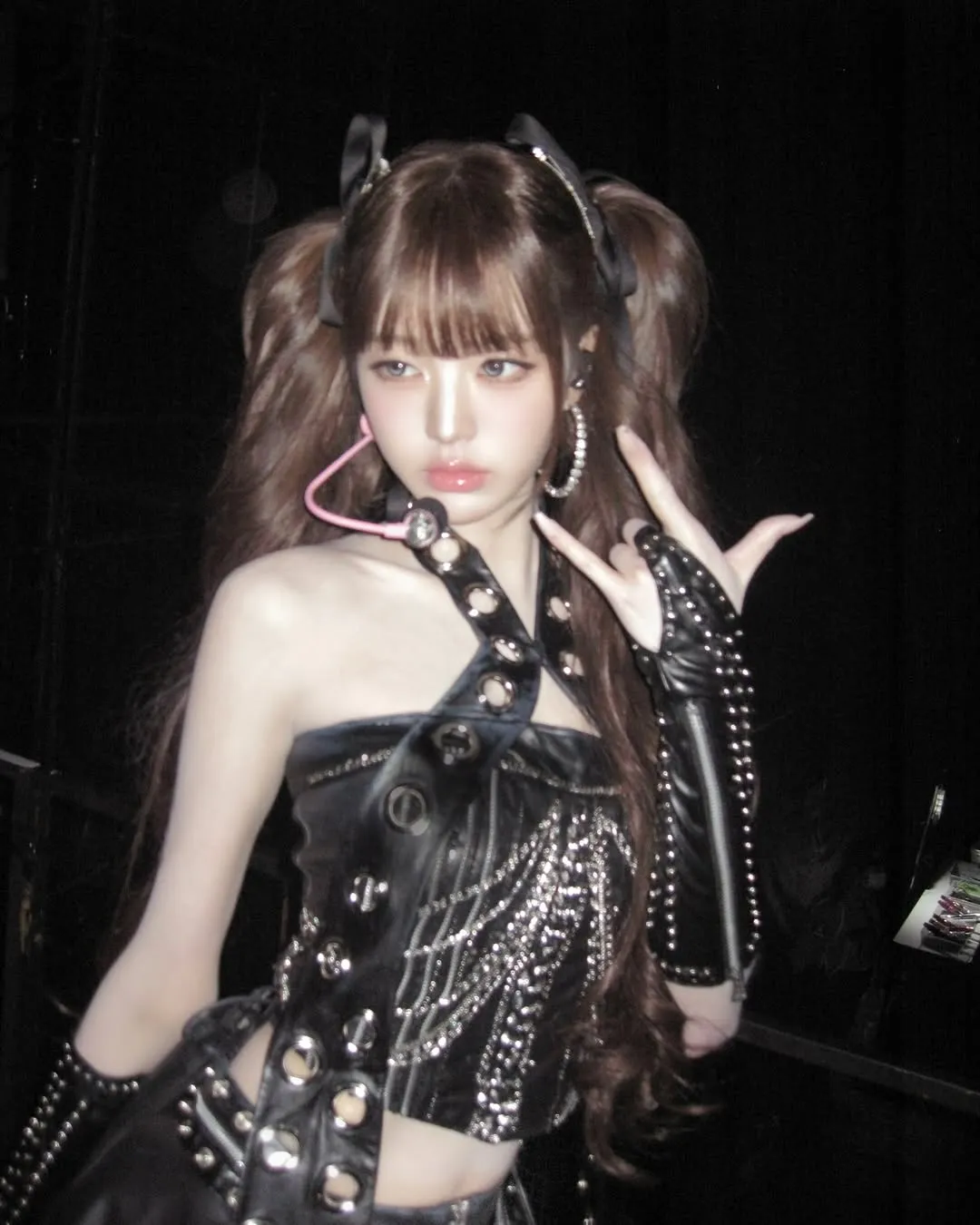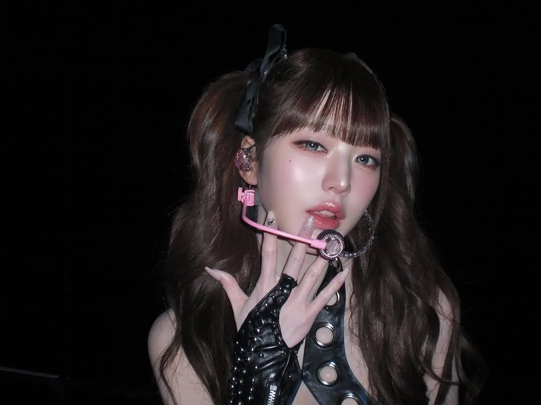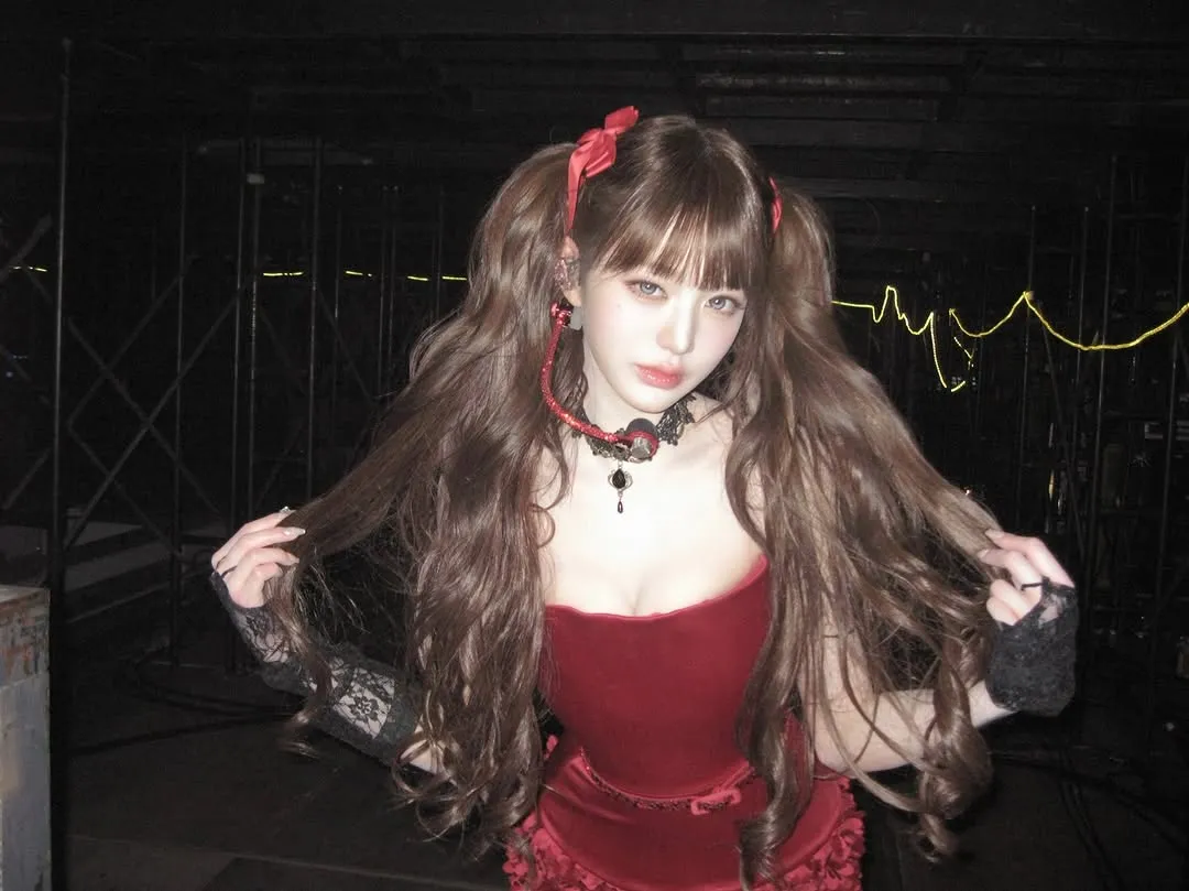 공개된 사진 속 그는 무대 아래에서 빛나는 미모를 자랑하고 있다. 붉은색 원피스가 장원영의 귀여운 매력을 한층 돋보이게 했으며, 긴 머리를 양갈래로 묶은 헤어스타일이 눈길을 끈다. 또 다른 사진에서는 검은색 의상을 입고 깜찍한 게임 캐릭터 같은 비현실적 비주얼을 선보였다.