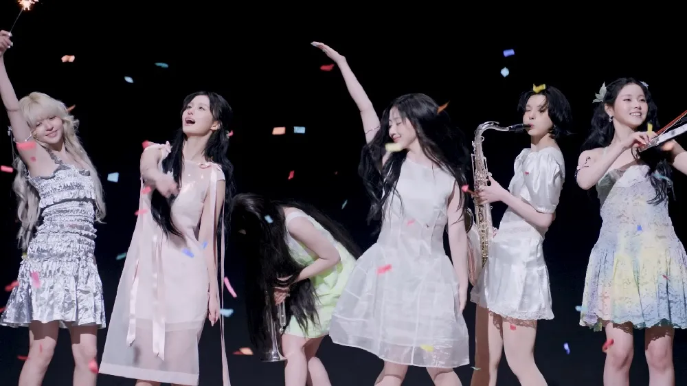 The trailer spotlights each of the six members' personalities in a dreamy, romantic vibe. Gathering under a chandelier, they share bright smiles, play the violin, and toss confetti — a lush visual that captures the essence of 'Heavy Serenade'.