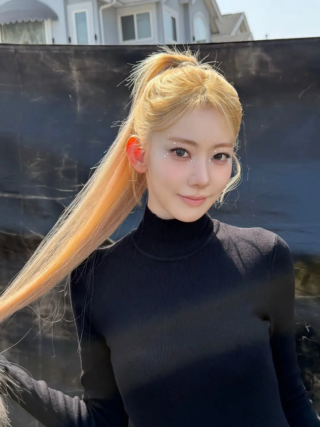 On the 24th, Sakura posted photos on her Instagram with the caption "Blonde ponytail".