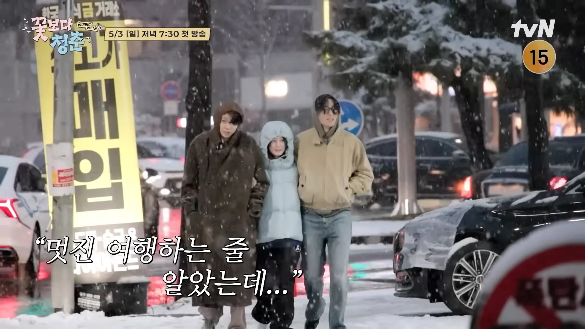 In the Episode 1 teaser released by tvN on the 27th, the trio are chatting with fans on a live broadcast when producers suddenly whisk them away. As the confused stars struggle to grasp what's happening, an on-screen caption declares, "What else? You've been kidnapped," teasing the signature ambush-start format of Youth Over Flowers.